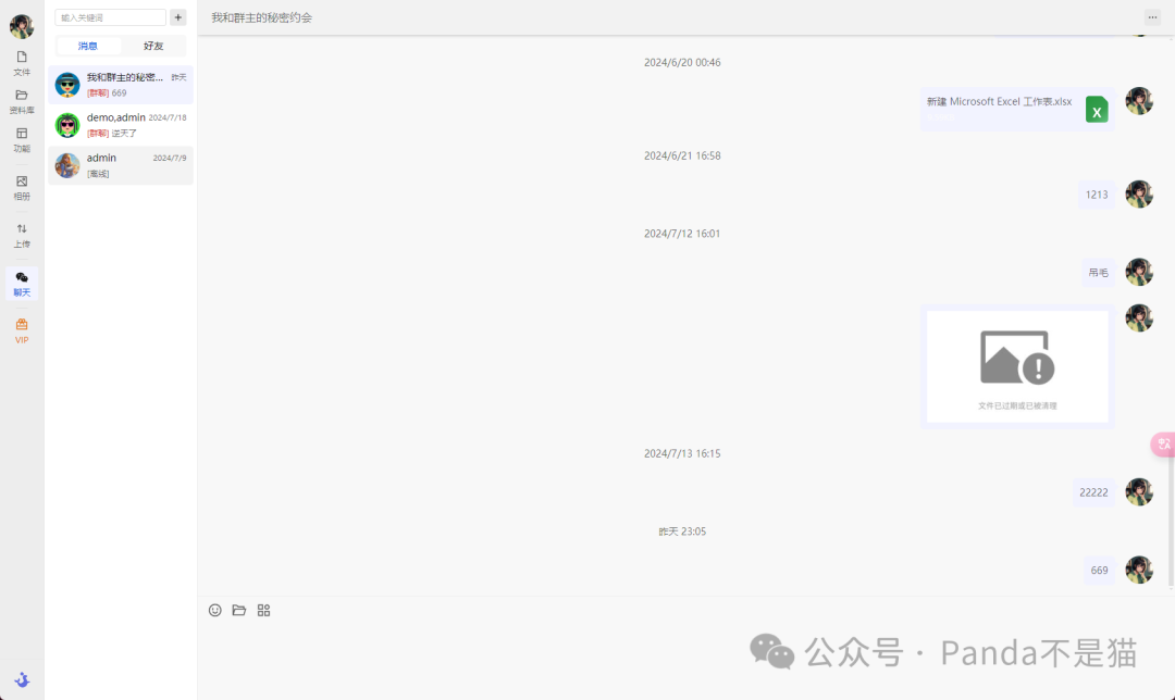 聊天界面这里用作者演示站的图,我就懒得添加用户了。