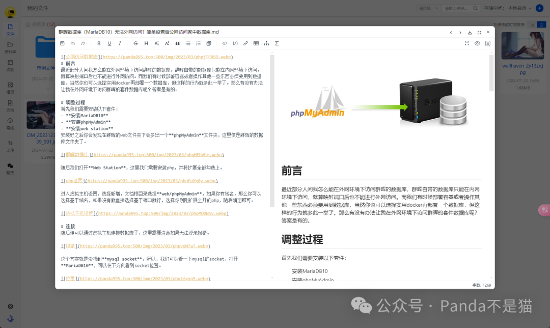 上传了一些文件作为示例,展示效果个人觉得蛮不错的,支持md文件、音视频以及图片等常规文件的预览和修改,搭配自部署onlyoffice还能实现文档的直接预览和修改。