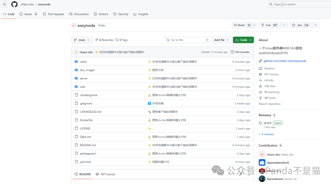 项目的部署并不难,也没有什么权限要求,毕竟我们只需要用到它的服务器监控以及SSH web功能。目前该项目在github上拥有1.1k的Star,感兴趣的可以去项目源地址查看。