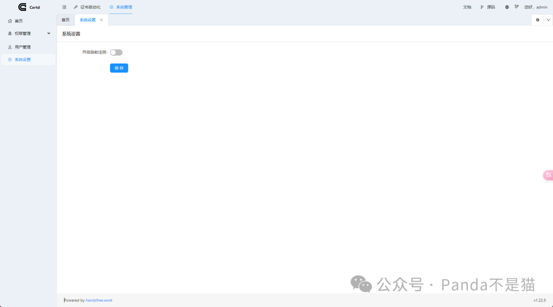 界面设计还是蛮不错的,首页会有证书自动申请的流程,引导做的挺好的。系统设置中可选择是否开启自助注册,开启之后可将网址发给朋友,这样便能共同使用。