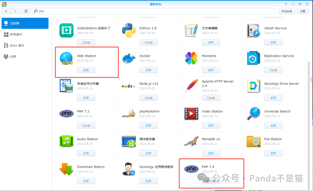 因为是使用各种html拼接形成的,且目前项目并没有打包成docker,所以在部署上我们需要使用web station,而目前支持web station的NAS有群晖、威联通。也就是说极空间以及绿联目前不支持该项目部署。在部署前我们下载好web station套件以及PHP。