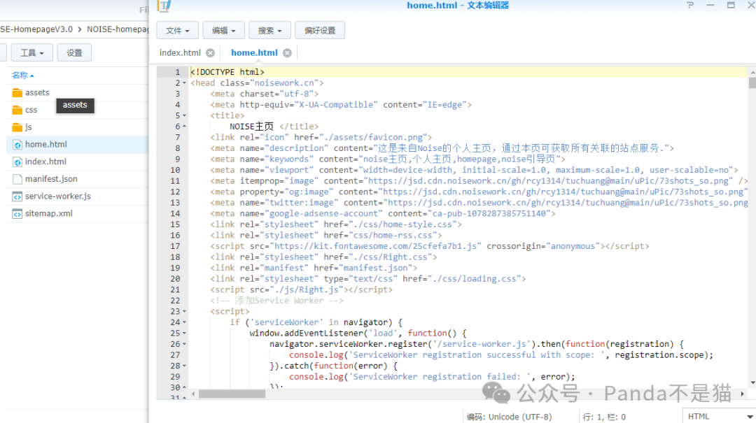 那么如果修改作者默认设置呢?既然是html文件,直接去项目根目录找到这两个主页的文件更改就可以了。在根目录中有index.heml和home.html两个文件,分别负责了两个模式的主页,通过修改其中的内容就可以做到修改网页展示内容。