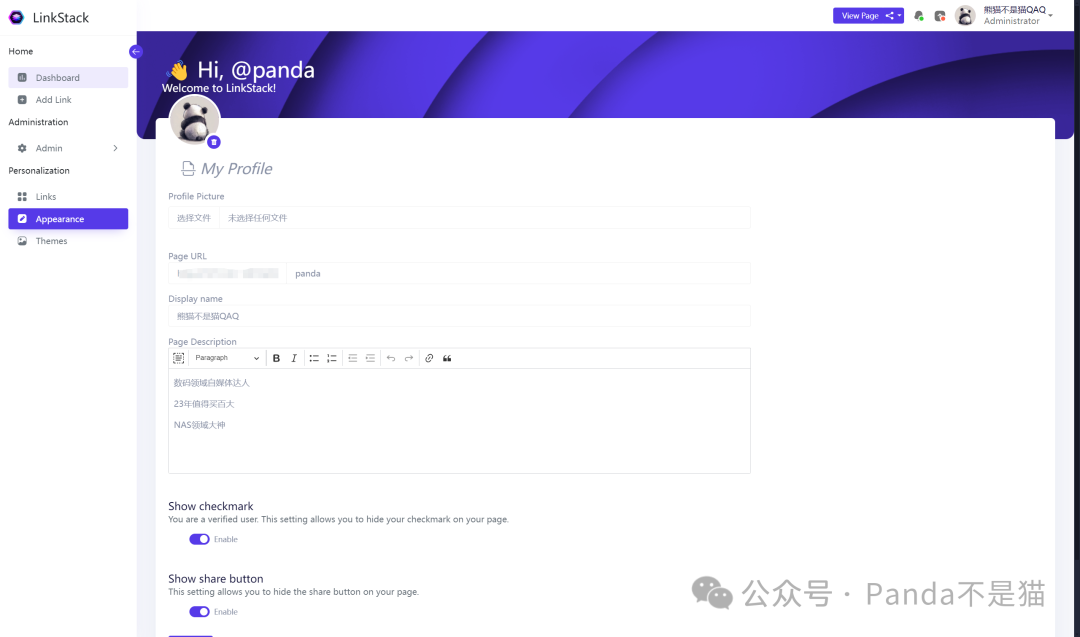 内容的共享极空间做的非常不错,既方便又快捷的方式也让普通用户也能操作。而针对一些高阶的共享,这就需要用到Docker了,例如今天熊猫介绍到的链接共享平台「LinkStack」。