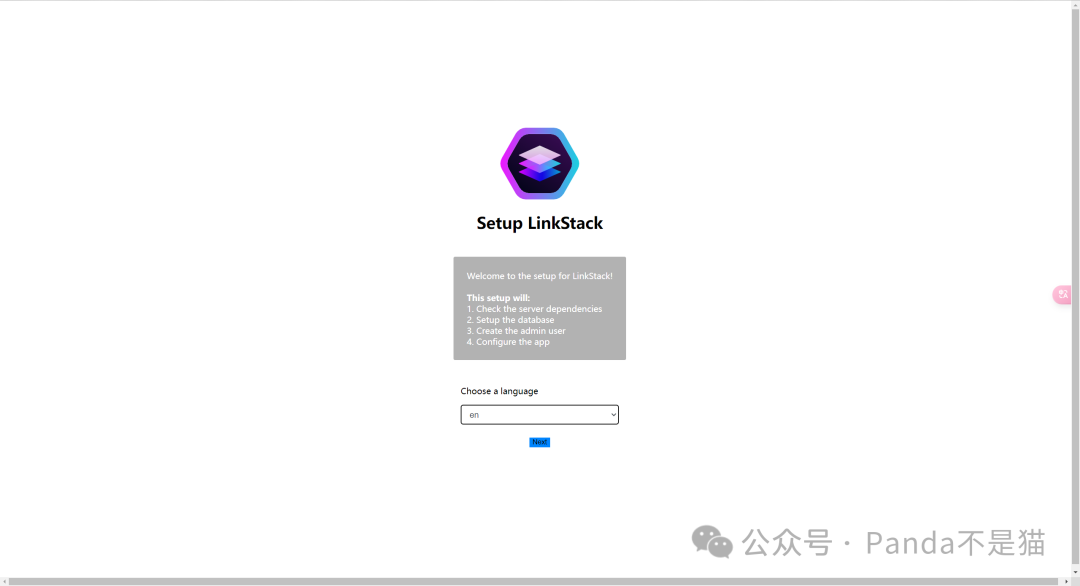 打开浏览器输入极空间IP:5800就能进到项目的安装界面,比较遗憾的是该项目模具前并没有对中文进行适配,不过我们有强大的网页翻译,所以使用起来问题并不大。