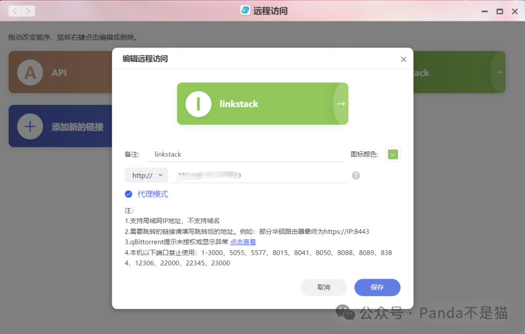 外网使用时,可通过极空间的远程访问功能,将其地址和项目名填写好之后就行了。这里需要注意的是该项目的系统图片资源需要在https协议中才能使用,不然会出现资源加载问题,所以在使用远程访问时需要勾上代理这一栏。