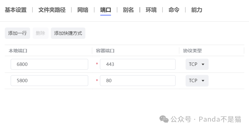 端口方便我们需要映射80和443端口,这里随意设置就可以了,只要不与已有的端口冲突就行。