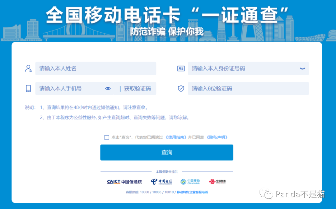 你的名下有几张手机卡呢?是否忘记了自己都办过那些运营商的卡呢?我目前只记得我办过好几张卡,不过卡号以及运营商都不太记得了,因为现在一直使用的就这一张。 全国移动电话卡“一证查询” 是由中国通信研究院低调发布的,可查询名下各运营商手机卡数量的在线工具。只需要用浏览器打开网站地址,输入身份证号码、姓名、手机号码,即可查询到名下在中国移动、中国电信、中国联通三家运营商开通的电话卡数量。操作非常简单,等提交后会在手机上收到查询结果,显示的短信来源会是国家反炸中心,应该是很权威了。