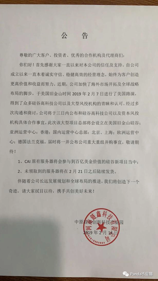 蜗牛星际,由河南链鑫科技有限公司推出的一个项目,通俗点就是山寨比特币项目,矿机能够挖CAI或挖IPFS两种虚拟货币。用户可根据自行判断挖啥币,从而进行获利。然而4个月时间,公司就彻底跑路,耐人寻味。