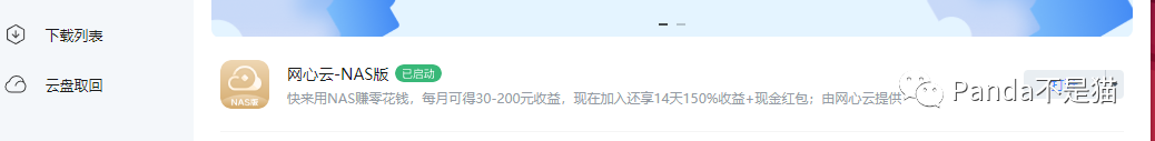 目前市面上的各种宽带收益软件蛮多的,有甜糖计划(好像叫这个),网心云以及京东云等等。综合考虑了一下,如果要下容器就太麻烦了,而且不是很想占用太多的带宽来做这个事情。恰好之前用NAS迅雷套件发现它更新了这个东西。