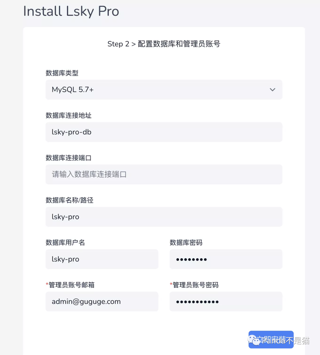 填好相应信息后点击立即安装就行,安装完成之后再次访问http:群晖IP+端口号,此时就会出现lsky的主界面。