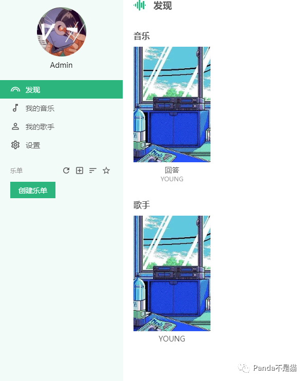 登陆之后便是这样的界面,侧栏包括发现、我的音乐、我的歌手以及设置选项。