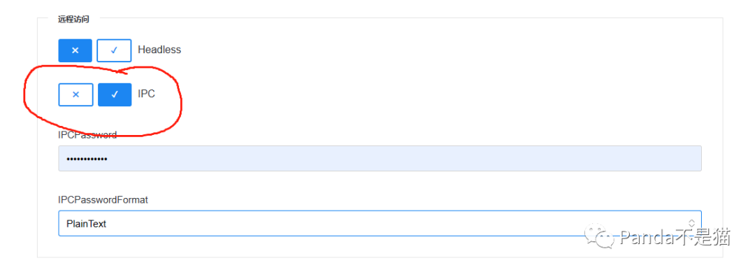接着点击高级设置,在这里将ipc选项打开,下面的密码为访问密码。