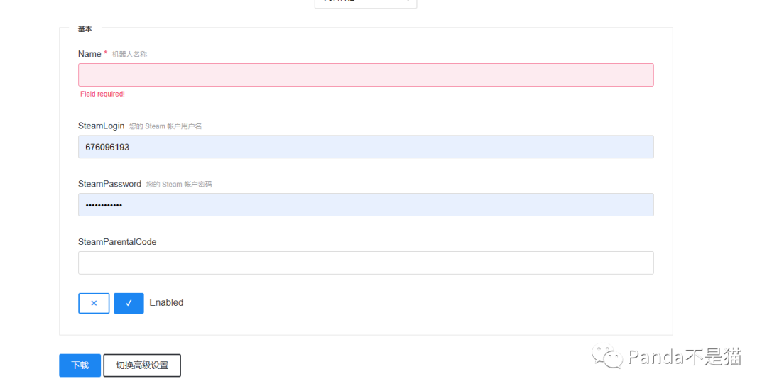 接着我们访问ASF配置生成网址去生成我们的机器人配置,网址为:https://justarchinet.github.io/ASF-WebConfigGenerator/#/asfName是机器人名字(唯一不可重复一个账户对应一个bot)SteamParentalCode是家庭监护(当然没开就不填)填写完点击下载,配置文件生成器将会根据您输入的名称生成新的json文件。将该文件保存到刚刚新建的config文件夹。最后在容器设置文件映射挂在路径为/app/config