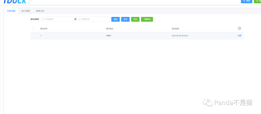 而最后统计界面能让我们看到目前已经提交的表单数量,提交的IP地址以及地域等信息。