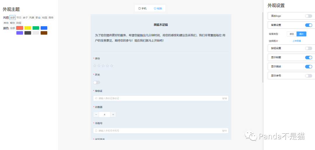 外观设置可以让你添加自己的logo或者自定义背景图。