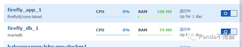 等待它构建完成即可,完成后你可以看到你的docker中多出了两个容器分别为Firefly app与Firefly db。