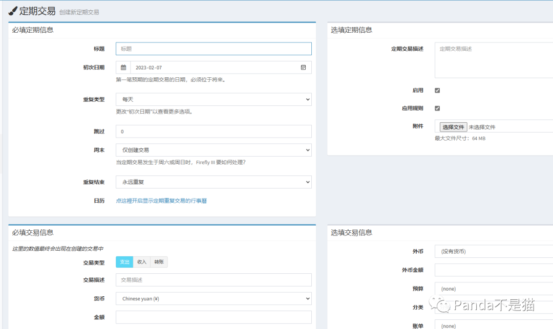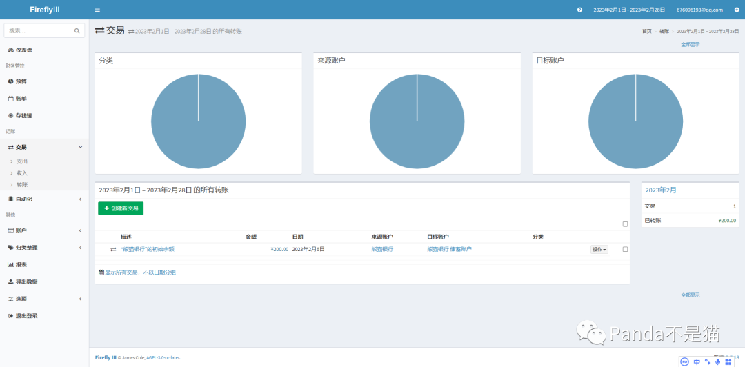 前面介绍过一款财务管理的容器,不过碍于功能的确有点简陋了,只有简单的记账出账以及统计功能,于是乎决定找一找有没有其他功能更加强大的个人账单或者财务管理的容器。经过七七四十九天的各处搜索,终于找到了能够这样一款强大的个人财务管理项目。「Firefly III」 是您个人理财的(自托管)经理。它可以帮助您跟踪支出和收入,因此可以减少支出,节省更多。Firefly III支持使用预算,类别和标签。使用大量外部工具,您可以导入数据。它还有许多简洁的财务报告。