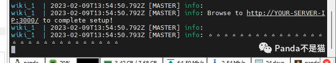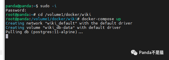 打开ssh工具,连接NAS后输入一下命令。启动管理员——sudo -i进入docker文件存放目录——cd /volume1/docker/wiki部署容器——docker-compose up随后一直等待即可。