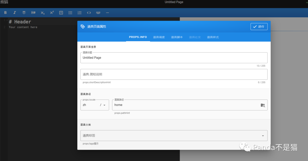 创建后这里可以设置标题,说明,页面路径以及css属性。