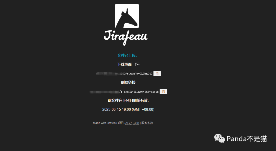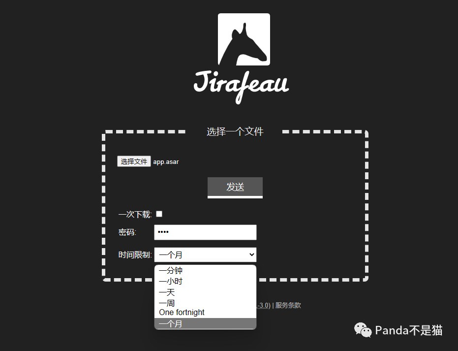 部署成功后我们上传文件尝试一下,文件上传后会让你设置下载密码,自定义有效时间与是否仅允许一次下载。