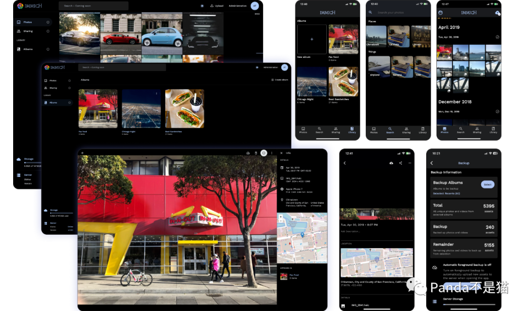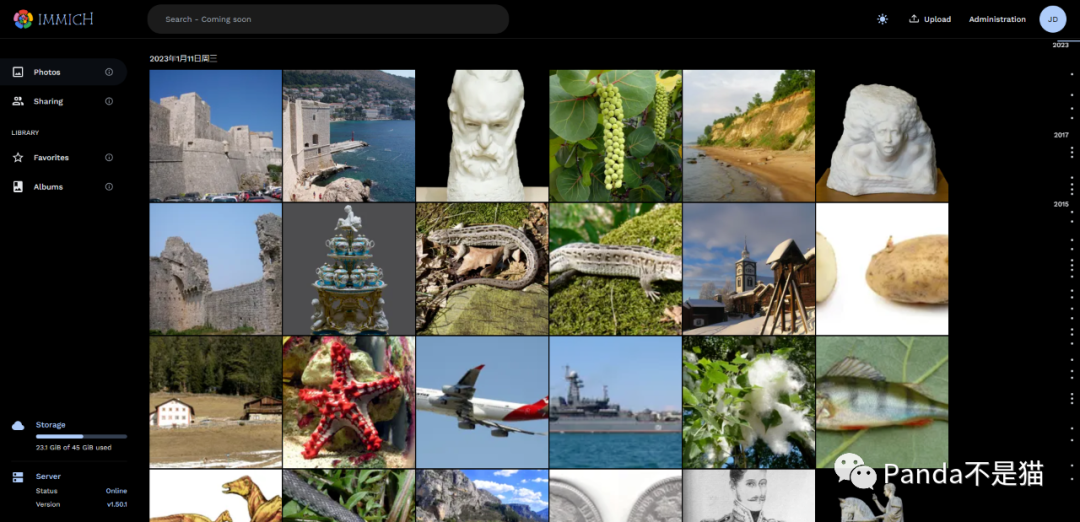 我这里因为容器已经删除了,其次官方也有相应的演示站,就不再重复部署了,你们也可以直接登录演示站查看。https://demo.immich.app/,邮箱: demo@immich.app密码: demo