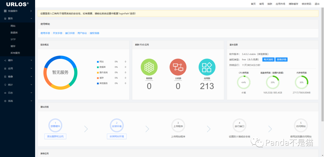 这几天帮群友找OA系统的容器,偶然接触到了URLOS,一款类宝塔面板的主机管理平台,部署后发现里面很多可直接一键部署的应用,也可用于网站搭建,实用性还算不错。今天推荐给大家,最后如果觉得信息有用或者有趣,求个关注好伐?