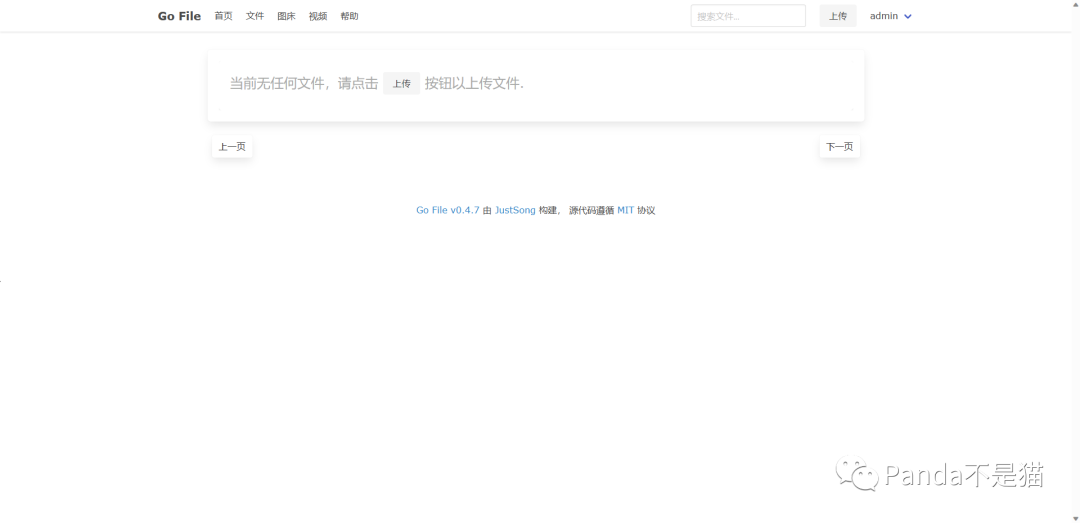 进入主界面能看到整个界面还是挺简单,上边功能栏显示首页,文件,图床以及视频和帮助。右边登录管理员进行登录。