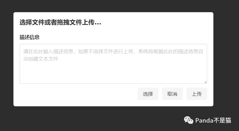 在文件上传上面和传统的不一样,它是采取拖拽到上传框的形式上传,当然你也可以直接输入文字,可保存为文本文件。