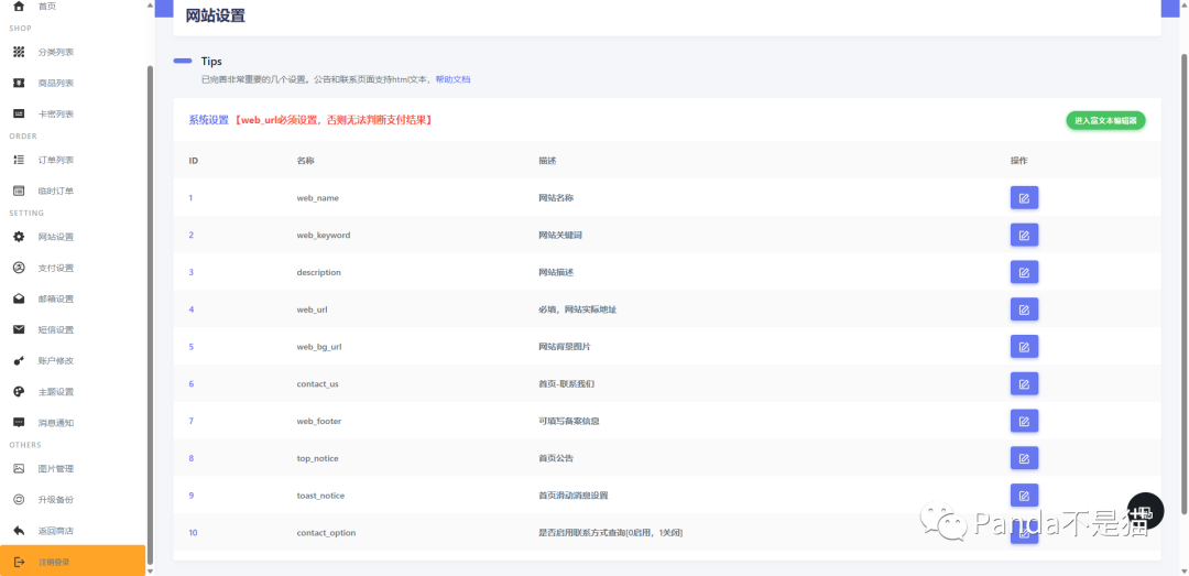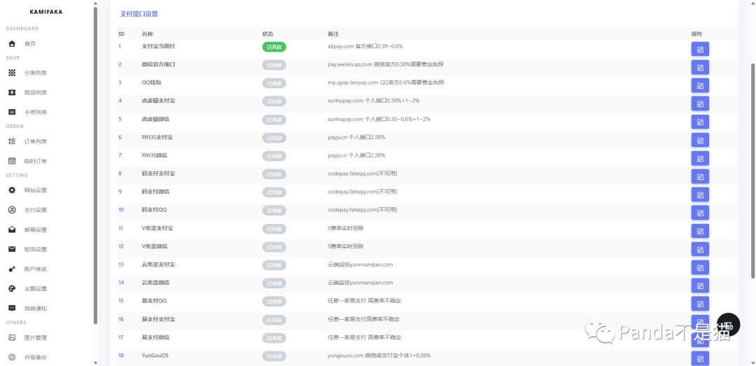 网站的自定义设置项真的多,几乎能做到看到的所有东西都可以更改,最值得一提的就是这个支付接口了,太全面了,覆盖主流的支付模式也有小众的一些支付接口甚至还有海外接口。