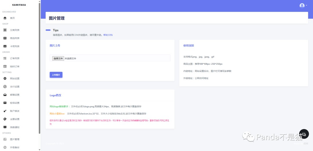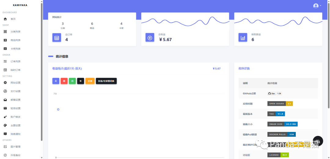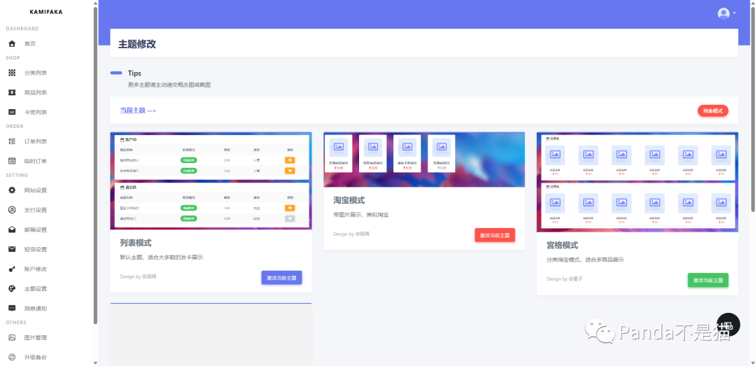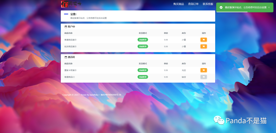 可以看到作者预留了一些演示,卡密系统有什么用我也就不多说了,这里我们直接看后台界面的自定义项多不多。后台路径为/admin,默认管理员为 admin@qq.com 密码123456。