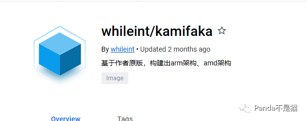 该容器部署很简单,因为作者原版是不带arm和amd架构的,所以如果不适用的可以用第三方构建,docker中搜索whileint/kamifaka,可以看到这是基于作者原版没有改动的,只是多了arm与amd架构镜像。