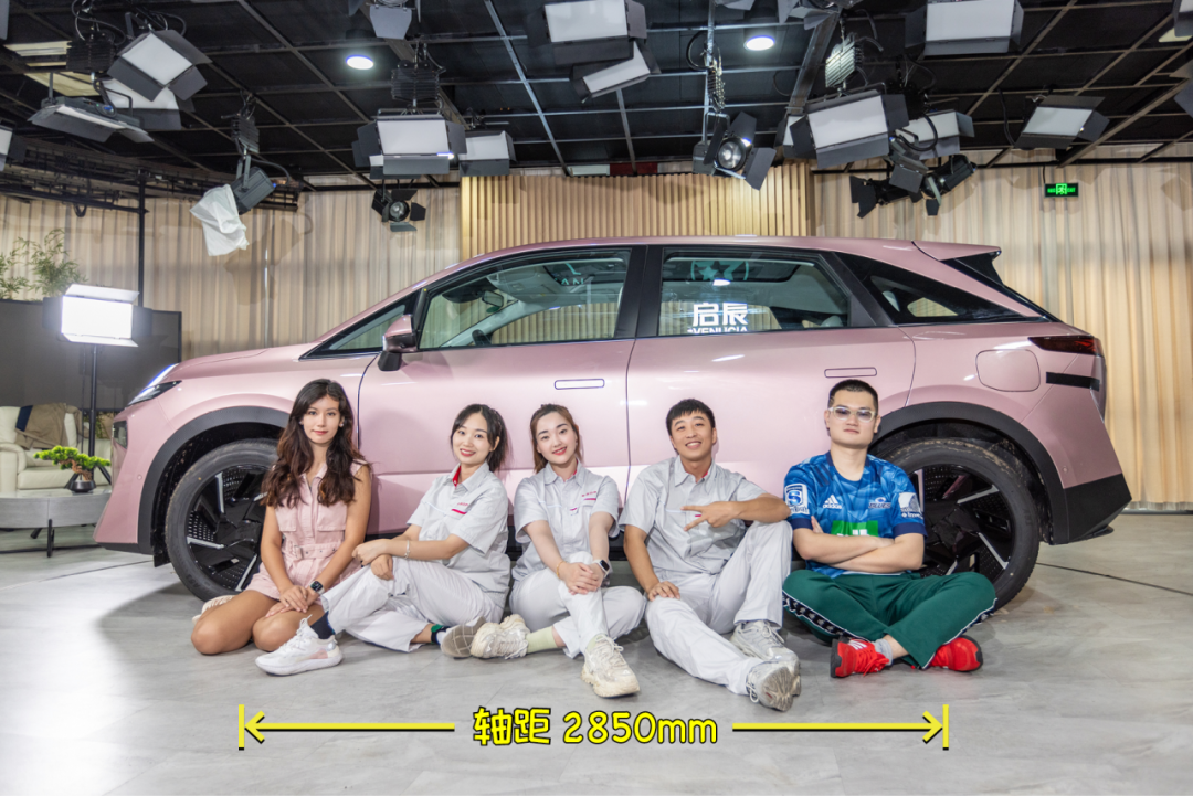 开始人肉测量模式,5个小伙伴排排坐,正好量完2850mm轴距!