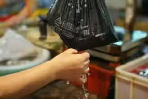第二,不说里面是否先放入水了,黑袋子厚实,鱼虾不易弄破,袋子又重,肯定也便宜,所以商贩都喜欢用。但是黑色袋子都是最髒的废袋子回炉做的,往往有毒,因此还是自己带一个袋子比较好。但是,商贩从批发处批鱼虾或各种蔬菜时用的大塑料袋也是黑色的,所以对消费者来说是防不胜防。