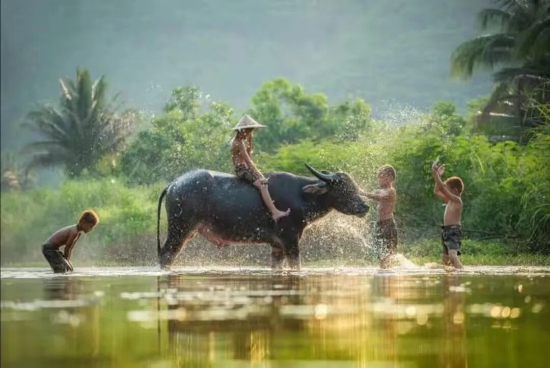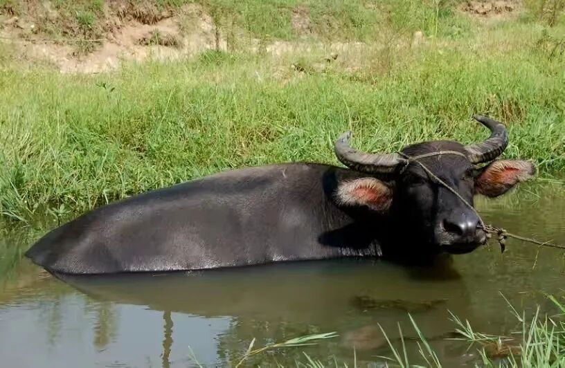 第一,其实这种水牛不是中国原生种,中国有种已经灭绝的水牛,叫做圣水牛,有专家怀疑“兕”最早说的就是这种圣水牛。我们现在的这种水牛,根据线粒体的检测,是分布于东南亚的沼泽水牛驯化而来。虽然这种圣水牛已经灭绝,但是商周时期,有个青铜器“牛尊”,复刻了其原貌。与现代的牛不同,这种牛脾气和非洲水牛一样暴躁,皮更厚,而且角更粗更短。