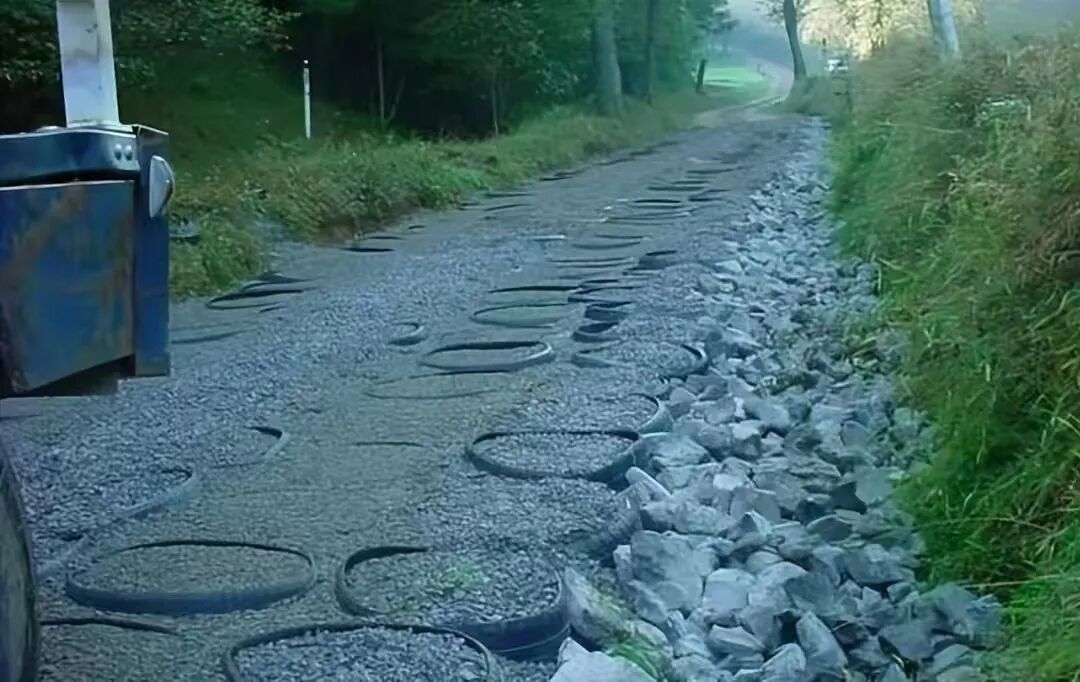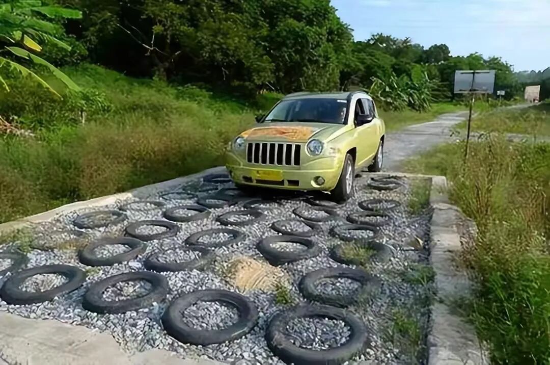 第三,中国在部分乡镇公路上可以大量使用这种废弃轮胎的,厚橡胶有凝聚力、抗水毁松散地基作用,还带一定路面弹性,有防滑功能。中国汽车保有量快世界第一了,每年轮胎废弃量也非常巨大,这样的资源利用其实有重要前途。既减轻环保压力,也减少了路基沙石消耗量。 城市道路因为每年经常开挖路面,这种整体大块连为一体的就有点不适合开挖需求,所以不适合在城市发展推广。