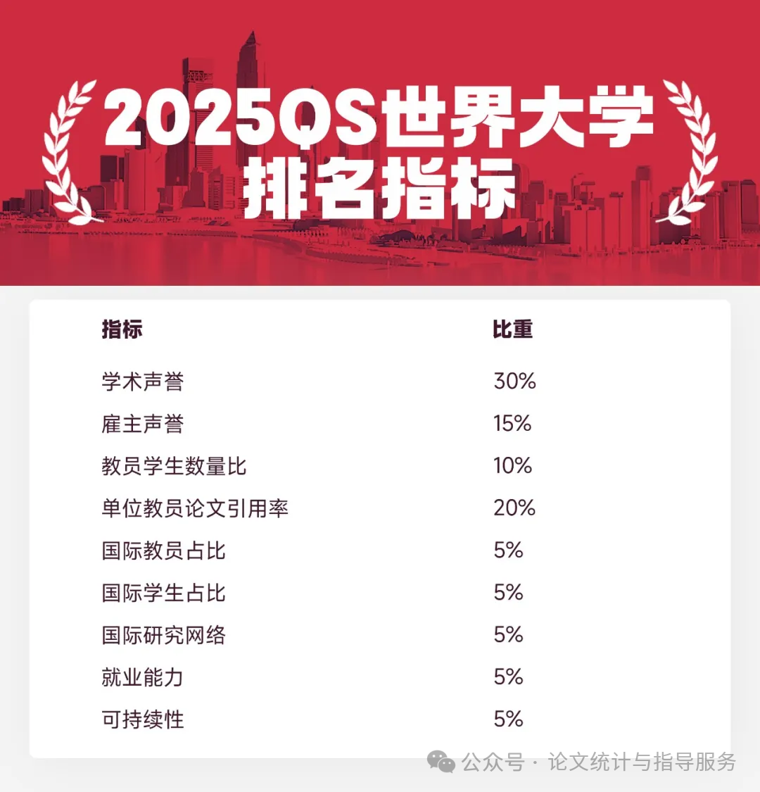 6月5日今晨,国际高等教育研究机构QS Quacquarelli Symonds正式发布了2025QS世界大学排名,该排名是同时将就业能力与可持续发展纳入评价体系的排名。涵盖9项关键指标:学术声誉、雇主声誉、教员学生数量比、单位教员论文引用率、国际教员占比、国际学生占比、国际研究网络、就业能力、可持续性。各项指标的权重确保了排名的全面性和权威性。本次排名覆盖了来自106个高等教育体系的1500所大学。