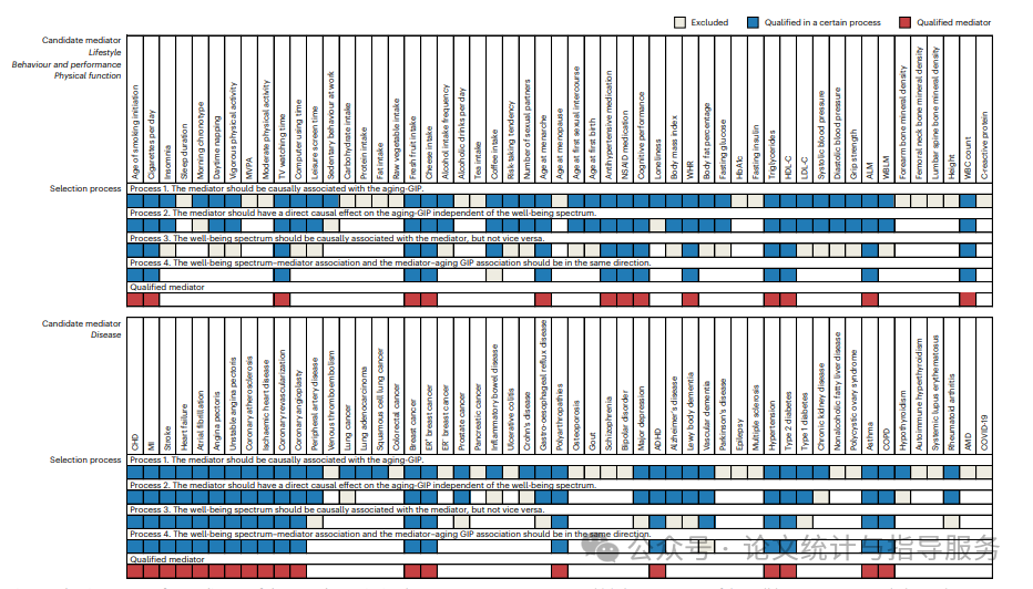 【选择幸福感谱与老龄化遗传指数之间因果关联的中介变量的过程】