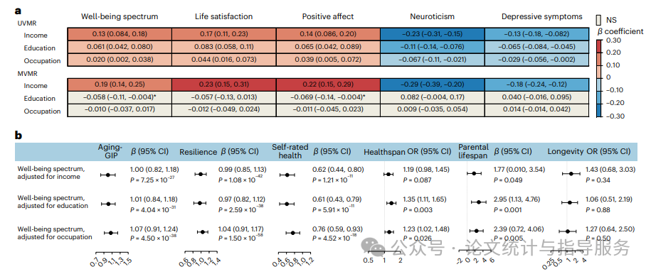 【调整社会经济指标后,使用单变量孟德尔随机化(UVMR)和多变量孟德尔随机化(MVMR)估计幸福感与衰老表型之间的因果关联】