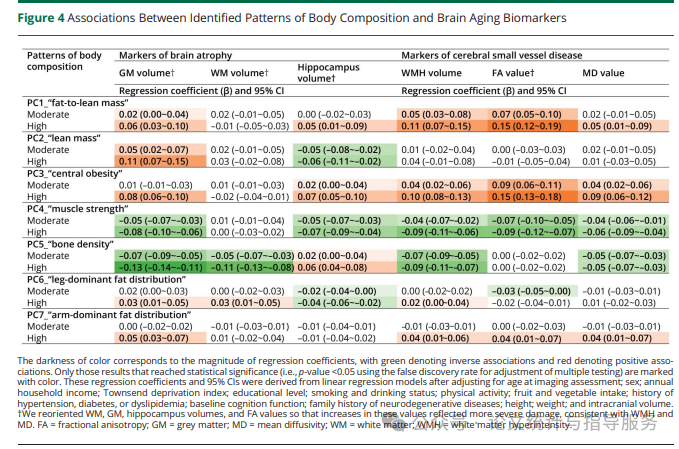 【已识别体成分模式与脑衰老生物标志物之间的关联性】