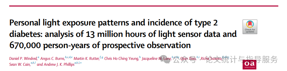 2024年7月,一篇题为“Personal light exposure patterns and incidence of type 2 diabetes: analysis of 13 million hours of light sensor data and 670,000 person-years of prospective observation“ 的研究论文在Lancet子刊发表,研究结果显示暴露于较亮夜间光线的人群以及暴露于可能扰乱昼夜节律的光照模式的人群,其2型糖尿病风险较高。避免夜间光照可能是一种简单且成本效益高的建议,有助于降低糖尿病风险,即使对于那些具有高遗传风险的人群也同样有效。