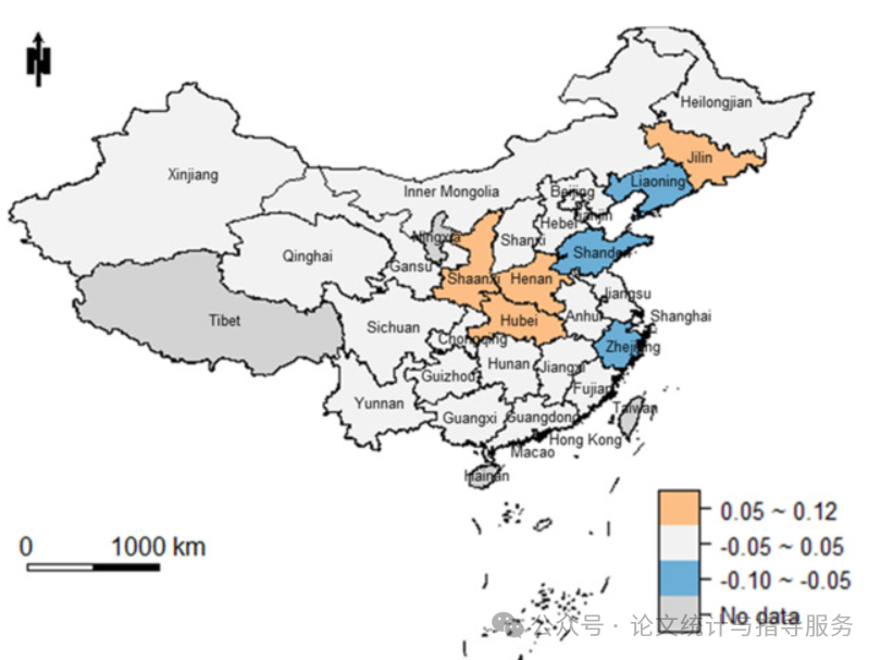 对于未测量因素的影响,河南和陕西的效应最大,而浙江、山东和辽宁的效应最小。
