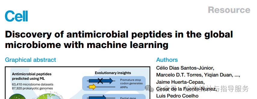2024年6月5日,一篇题为 “Discovery of antimicrobial peptides in the global microbiome with machine learning” 的论文在Cell上发表,该研究通过机器学习方法识别了近百万条原核生物AMP序列,为抗生素的发现提供了一个开放访问的资源库。这些序列来源于(宏)基因组数据中的候选AMPs(candidate AMPs, c_AMPs)。值得注意的是,其中大多数c_AMP序列之前并未被描述过。