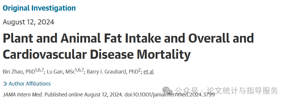2024年8月12日,中南大学的研究人员在JAMA Internal Medicine期刊上发表了一篇题为“Plant and Animal Fat Intake and Overall and Cardiovascular Disease Mortality”的研究论文,该研究旨在饮食中的植物和动物脂肪摄入量与总体死亡率和心血管疾病(CVD)死亡率之间的关联。研究结果表明,植物脂肪摄入量增加,特别是谷物脂肪和植物油,与总体死亡率和CVD死亡率风险降低之间存在一致但较小的负相关关系。同时,高摄入量的动物源性脂肪,包括乳制品脂肪和鸡蛋脂肪,也被证实与总体死亡率和CVD死亡率风险增加相关。