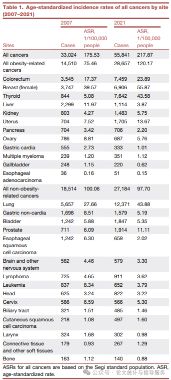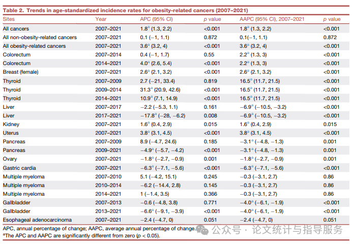【2007年至2021年间与肥胖相关癌症的年龄标准化发病率趋势】