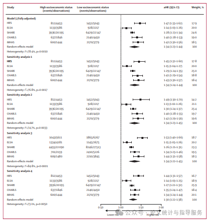 【社会经济地位在五项老龄化研究中对抑郁风险的特定影响及综合影响】