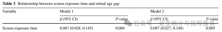 【屏幕暴露时间、睡眠起始时间与视网膜年龄差之间的关系】