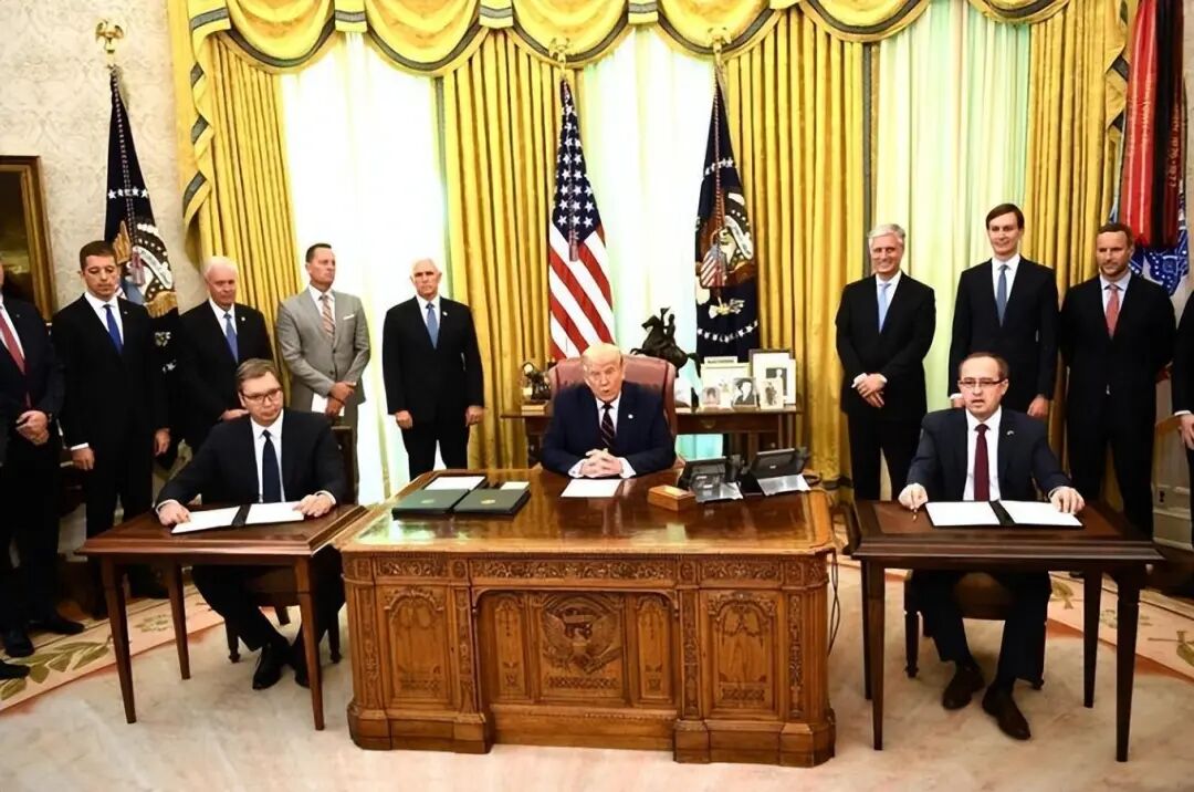 其实,武契奇受到的委屈还有很多,主要都是来自美国。比如,在2020年9月4日,时任美国总统特朗普,在白宫中作为“调解员”,招待了爆发冲突的双方:代表塞尔维亚的武契奇,与代表科索沃地区的霍蒂。