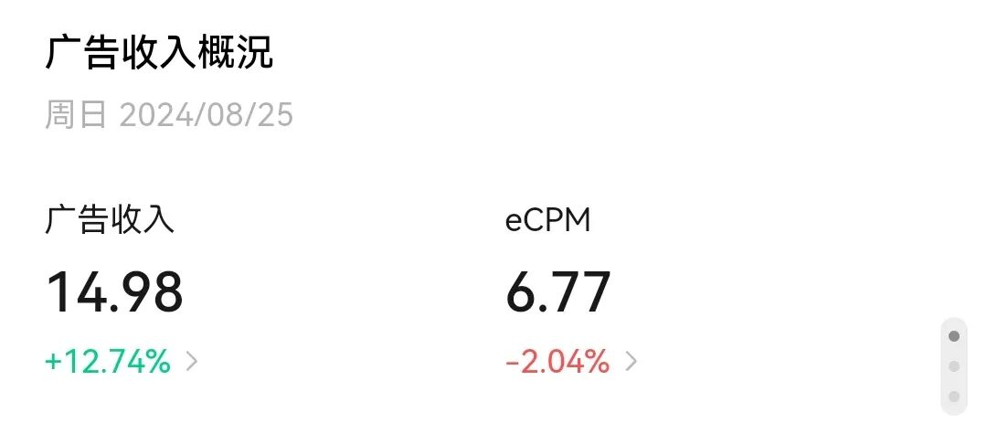 从把它上线到现在,它的浏览量都不高,都是在100左右每日,所以它每天能产生的也就1~2r。