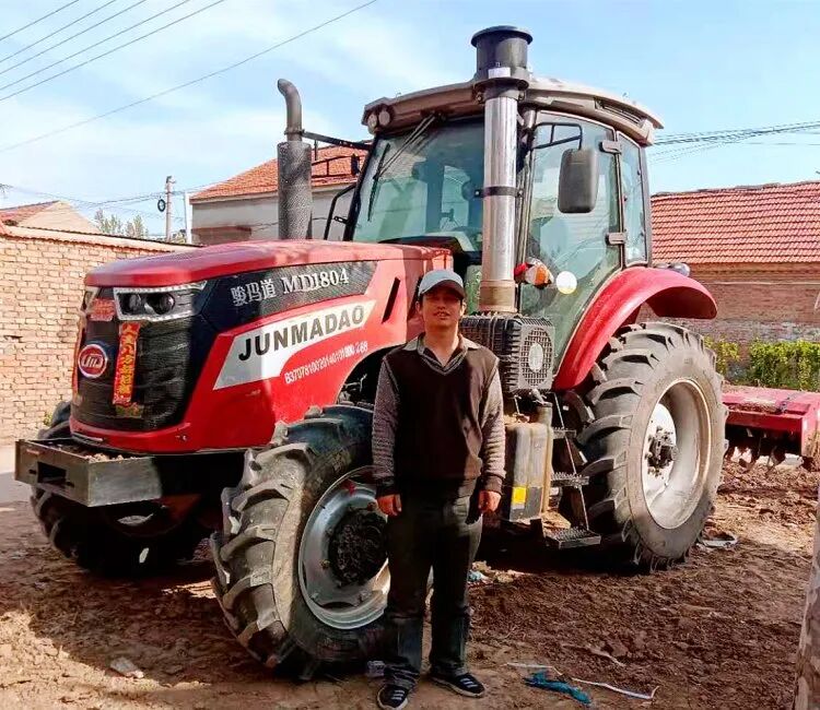 赵永波告诉记者,他之前用的其它品牌拖拉机,用着也不能说有多好,也不能说有多不好,因为自己也没有对比过,2019年的时候,伙计给他推荐骏玛道拖拉机,经过对比才发现,区别真是大。赵永波说:“首先是拖拉机的价格,同样马力的,骏玛道价格更合理,其次是油耗,对比下来,骏玛道的拖拉机油耗更低,一箱油能工作十几个小时,油耗低,也就意味着减少了一定的成本,最后就是马力足,它的马力跟它的型号非常匹配,不像有些拖拉机是大马拉小车。对比之后,我马上把我的旧机卖掉,在2019年10月份就买了一台骏玛道2104拖拉机,经过时间验证,的的确确是马力足,油耗低,干活快,挣钱多,它是我人生中第六台拖拉机,也是让我最满意的一台。”从赵永波脸上洋溢着的笑容也不难看出,他对于自己选择的骏玛道拖拉机非常满意。