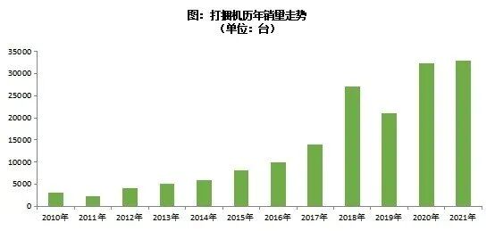 从上图可以看出来,国内打捆机从5000台不到增加到2020年、2021年的30000台,打捆机的热销,无论是牧草打捆,抑或是秸秆打捆、地膜打捆,都直接地拉动了拖拉机的需求,在中原地区是70-150马力的中大型拖拉机受益,在东北、新疆地区是150-250马力的大型、重型拖拉机的需求,另外秸秆的运输还拉动的中型拖拉机的需求。